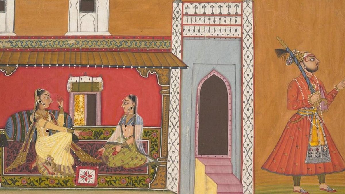 While Rajputs (meaning ‘Son of a king’) are known to have a set clan structure since the seventh–twelfth centuries, a closer look at the historic region of Rajputana (Land of the Rajputs) reveals that the margins of clan, lineage and jati (caste) were not as iron-clad as claimed by courtly sources.[4] Recurring battles for territorial expansion ensured a constant flux of war captives, leading to enslavement of women. Ramya Sreenivasan, in ‘Drudges, Dancing Girls, and Concubines’, writes, these slaves performed different services to meet the labour needs of Rajput households while also contending their status in a ‘competitive polity and evolving jati hierarchy’.[5] However, the increasing inability of the Mughal emperor to act as the arbiter of these clan contests in the eighteenth century, exacerbated the factional fights within elite households. At this time, slaves, especially concubines, close to the ruler wielded great influence and power.[6] But how? The companionship between Gulabrai and Maharaja Vijay holds the answer.